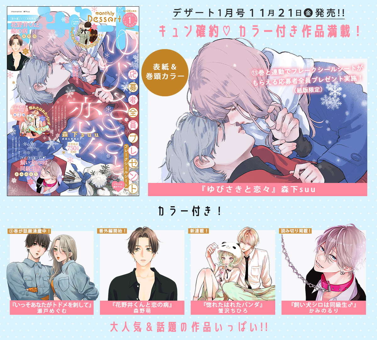 第45回デザート新人まんが大賞で優秀賞を受賞し、デビュー。リアルで共感を呼ぶ恋愛描写が人気の、注目の新人少女漫画家。『ふたりじめロマンチック』全3巻発売中。デザートにて『惚れたはれたパンダ』連載スタート。