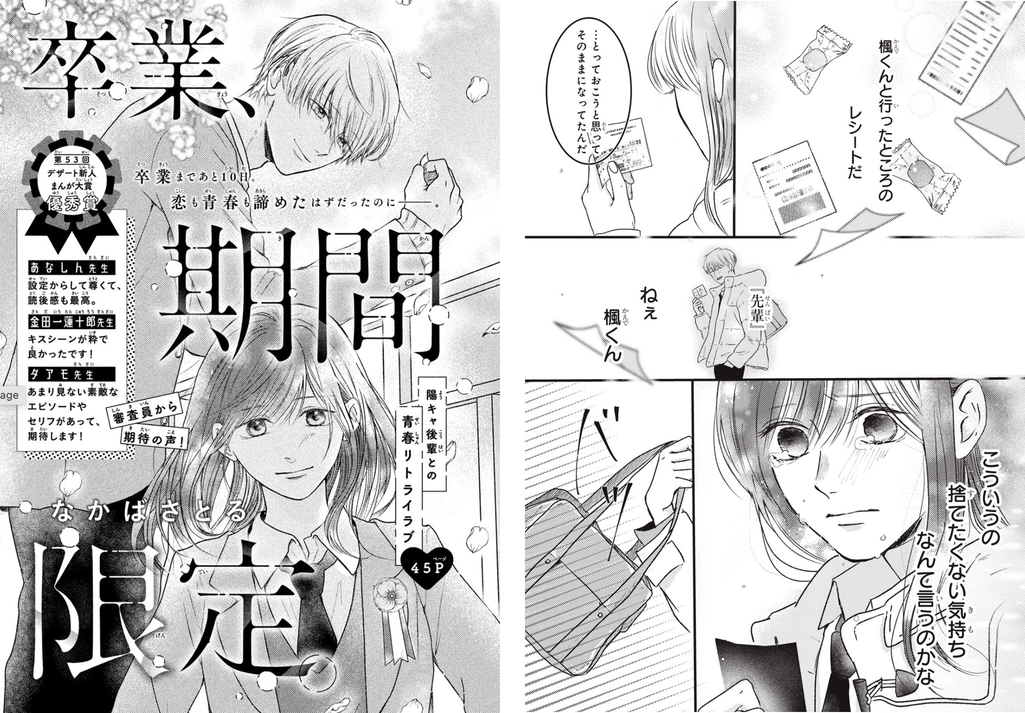 ーー2023年3月開催の、第53回デザート新人まんが大賞に投稿された『卒業、期間限定。』で優秀賞を受賞し、デビューが決まりましたが、この作品はどうやって作っていきましたか?